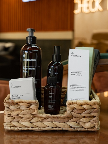 "SMART педикюр — современная процедура, позволяющая провести обработку кожи стопы и пальцев ног без применения каких-либо смягчающих средств.Удаление ороговевших частичек кожи, трещин и прочих несовершенств осуществляется в сухом режиме при помощи особых SMART дисков, на которые наклеиваются файлы с учетом размера и степени абразивности. StraDerm - итальянская дерматологическая линия косметики, которая состоит из препаратов по лечению и уходу за кожей стоп и рук, а также ногтевой пластины. Философию StraDerm определяют такие принципы как: максимальное применение компонентов натурального происхождения, высокая эффективность и безопасность.Видимый и длительный результат после ухода StraDerm уже после первого применения. *Представленность брендов в филиалах может отличаться, подробности можно уточнить у администратора"